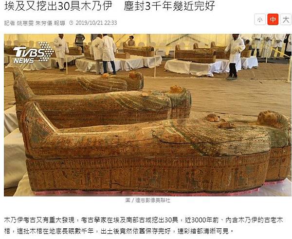 木乃伊考古又有重大發現,考古學家在埃及南部古城挖出30具,近3000年前、內含木乃伊的古老木棺,這批木棺在地底長眠數千年,出土後竟然依舊保存完好,連彩繪都清晰可見。 「神鬼傳奇」電影片段:「木乃伊嘛啊。」 人類對木乃伊的想像,不僅僅出現在電影裡,埃及古物管理當局近日更發表,近年來的重量級考古成果。 埃及文物部部長阿納尼:「一座墓群裡有30個密封木棺,23具成年男性,5具成年女性,2具孩童。」 埃及南部古城盧克索的帝王谷,出土30具密封木棺,上面的圖文清晰、近乎完好,裡面還有木乃伊,當局特地在媒體前打開其中兩具。 CNN主播vs.埃及考古學家哈瓦斯:「你對於出土文物保存的程度,感到驚訝嗎,我是我非常驚訝,這是一名女子的棺木,所以上面畫的是阿蒙神畫像,她正在卡納神廟裡,為阿蒙神歌唱。」 埃及考古學家哈瓦斯:「我想就如同你剛才所說,這是最重大的發現,出土地點就是,古埃及人生活的地方,18個棺木,埋在12個棺木下。」 埃及近年來,儼然上演了木乃伊的出土競賽,10月中同一個地點挖出用品。 今年5月,埃及吉薩平原發現兩名祭司的墓室木棺。 2018年,開羅以南的撒卡拉大型墓地,挖出4400年前王室祭司瓦提耶的墓室。 埃及文物部部長阿納尼:「這墓地色彩依舊鮮豔,保存了部分獨特場景,以及女性祭司的頭銜(雕刻),(我們確信)她跟皇室宮殿有強烈連結。」 埃及文物委員會希望透過不斷出土的祭司、高官墓室,能振興一蹶不振的旅遊業,成為埃及觀光的搖錢樹,而埃及為何要製作木乃伊? 美國大學開羅分校教授伊卡蘭:「古老埃及人相信,人死後靈魂會繼續存活,因此需要肉體能保存下來,不管是你肉體的型態或雕像,這就是為何木乃伊如此重要。」 還有另一種說法,是埃及人相信:人死後能夠復活,但復活的靈魂需要原先的肉體,經過多道手法,逐一處理,70天就完成一具木乃伊。 木乃伊不只為埃及古文化妝點了更多神秘色彩,連製作過程都相當獵奇。埃及又挖出30具木乃伊 塵封3千年幾近完好│TVBS新聞網 http://bit.ly/2qBtpYe