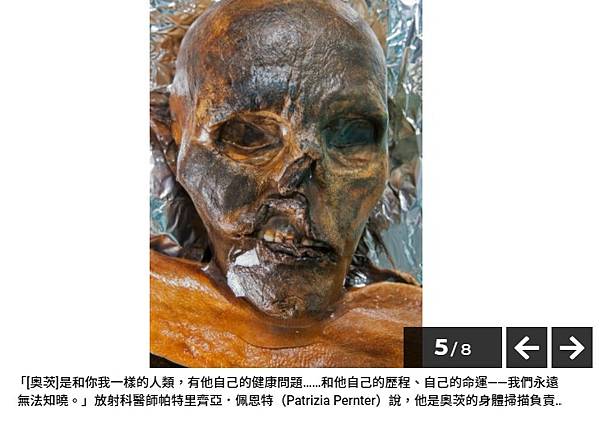 「我認為奧茨是世界上有史以來被研究得最徹底的人類。」法醫病理學家奧利弗.佩謝(Oliver Peschel)說,他主要在慕尼黑做研究,並且負責奧茨的保存工作。