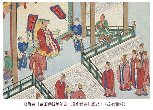 神農即炎帝,他不僅為政是帝王之聖賢,開創了農業、飲食文化,中醫和中藥也是他所奠基。圖為神農氏像,出自明仇英《帝王道統萬年圖》(公有領域)