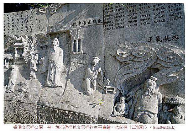 香港文天祥公園,有一塊石碑描述文天祥的生平事蹟,也刻有《正氣歌》。(shutterstock)