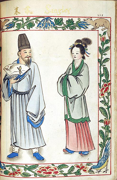 1590年代的西班牙出版品,在明朝商旅的繪畫上標示著「常來」、「Sangley」