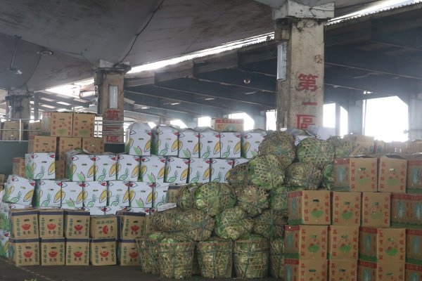 果菜市場批發商將蔬果運至市場,等候拍賣競標。(楊兆元攝)