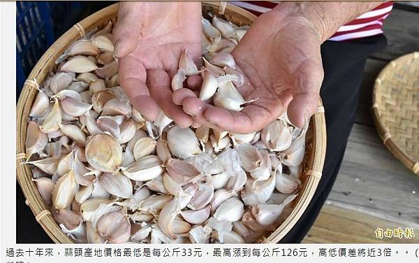 台灣加入WTO後,開放蒜頭進口,使得這個農產品的價格波動,直接與全球市場連動,常常出現「貴如金、賤如土」的劇烈波動情況。