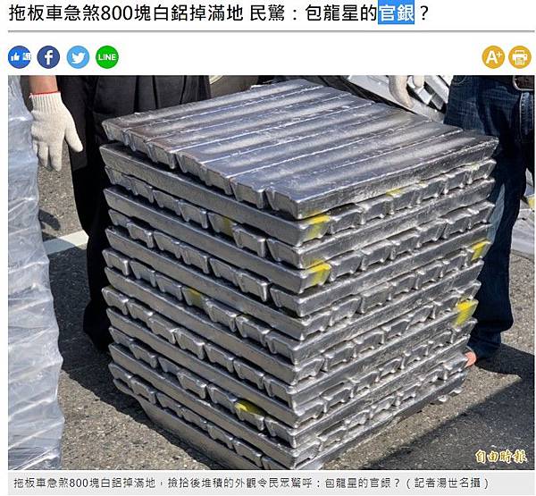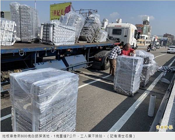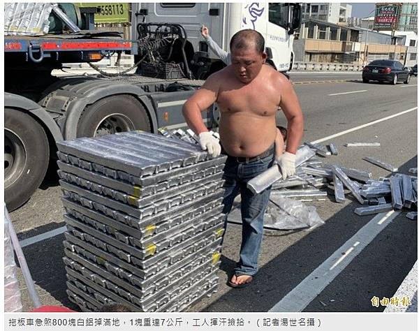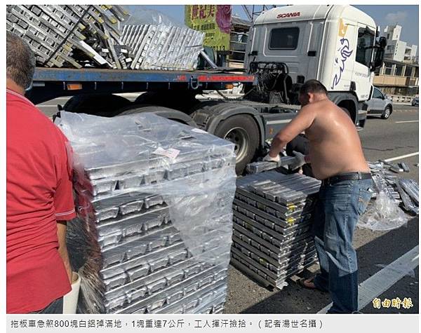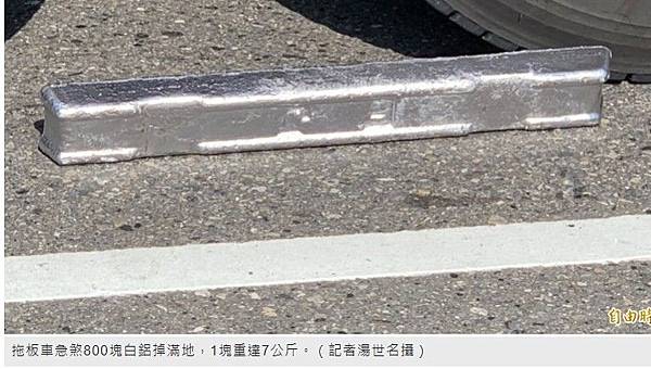 拖板車急煞800塊白鋁掉滿地 民驚:包龍星的官銀? - 社會 - 自由時報電子報