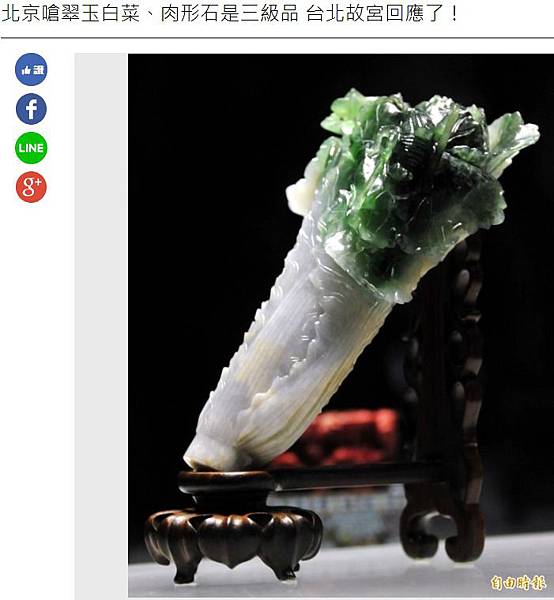 分享北京嗆翠玉白菜、肉形石是三級品 台北故宮回應了!到Facebook 分享北京嗆翠玉白菜、肉形石是三級品 台北故宮回應了!到Line 分享北京嗆翠玉白菜、肉形石是三級品 台北故宮回應了!到Google+