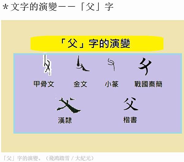 金文「父」的象形意義。(飛鴻踏雪/大紀元)