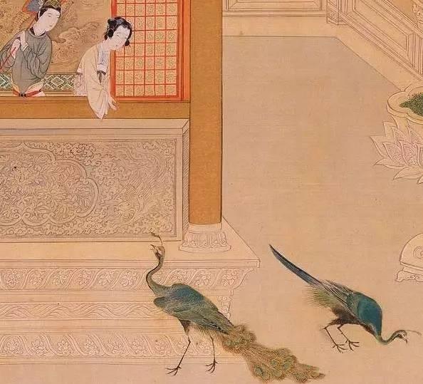 仇英所畫的《漢宮春曉圖》(局部),此畫為工筆重彩,現藏於台北故宮博物院。