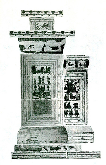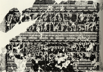 中國東漢石祠畫像石。武氏祠在今山東省嘉祥縣南武宅山,舊稱武梁祠或武氏“前石室”和“左石室”,為武氏家族墓葬的雙闕3個石祠的石刻裝飾畫,現保存刻石40餘塊。