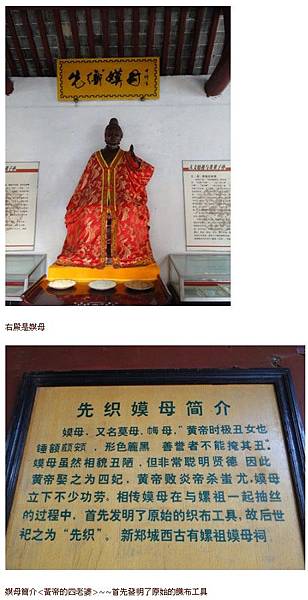 發明養蠶繅絲,把絲織成綢子的就是嫫母。黃帝的妃子(封號嫫母),她腦門突出似錘,下巴短縮,身材矮小粗壯怪異,面色發黑如碳,足見奇醜無比,形同母夜叉,但是為人賢德,所以黃帝為了制止部落「搶婚」事件,專門挑選了品德賢淑,性情溫柔,面貌醜陋但心地善良的她,這就告訴天下人「重美貌不重德者,非真美也,重德輕色者,才是真賢。」黃帝是華人的始祖,正式因為有嫫母這位賢內助,黃帝才敗炎帝,殺蚩尤。