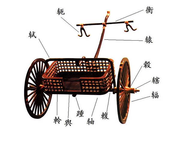 輿:車廂,呈橫長方形,或者半圓形和簸箕形,乘車者從廂後上下。