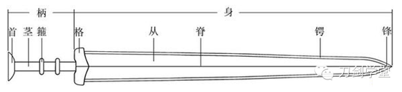 一把青銅劍主要由劍身和劍莖兩部分組成,所謂劍「莖」就是劍的把手。