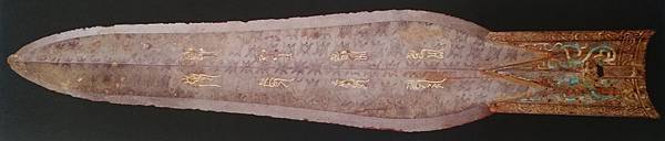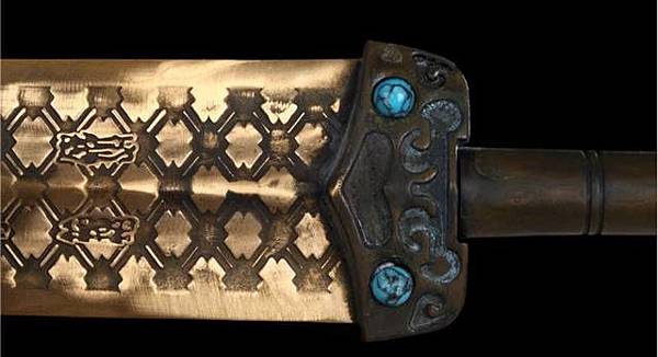 紋,劍格正面鑲有藍色玻璃,背面鑲有綠松石。