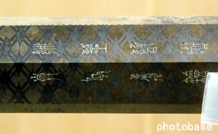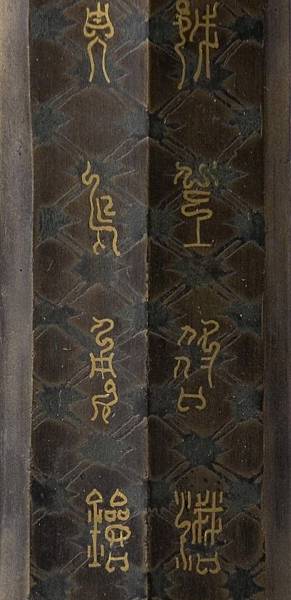 ,共8個字,這種古文字,史稱“鳥蟲文”,是篆書的變體。