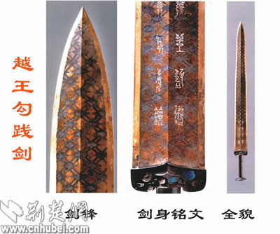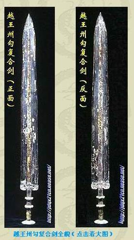 科學家發現劍的中脊和兩刃是用兩種不同成分的青銅鑄接而成,劍刃堅硬而鋒利,劍心卻有很強的韌性。這剛好印證了傳說中的"復合劍"確有其物。