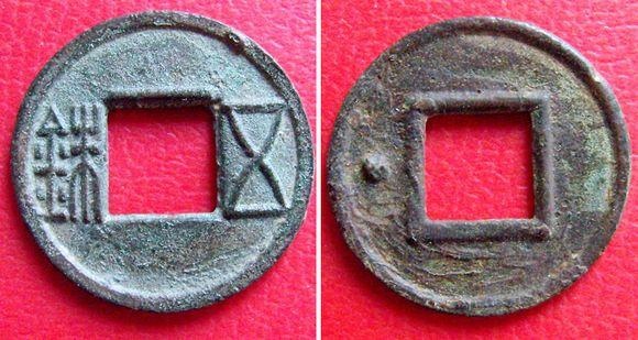 南朝梁武帝蕭衍普通四年(公元523年)鑄行。鐵「五銖」形體略小,背紋四出,是我國首次大批量鑄造的鐵錢。