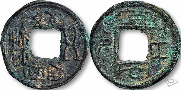 蜀漢於先主劉備歿後,丞相諸葛一方面極力安撫南方四郡,一方面以(犍為)權衡籌措軍需的重地,以作為南征之準備.(犍為)自西漢以來,便是益州(四川)與西南夷貿易的中心,且以產銀聞名.孔明於(犍為)鑄幣籌備軍需,自然是最佳場所.所鑄之背[為]錢,乃是方孔錢紀地之肇始.[直百五銖]背為(如附圖),徑2.7公分,錢重7.4公克,是[直百五銖]錢的另一種版式.背面穿左的篆文[為]字,書法精絕,相傳是武侯手筆