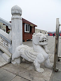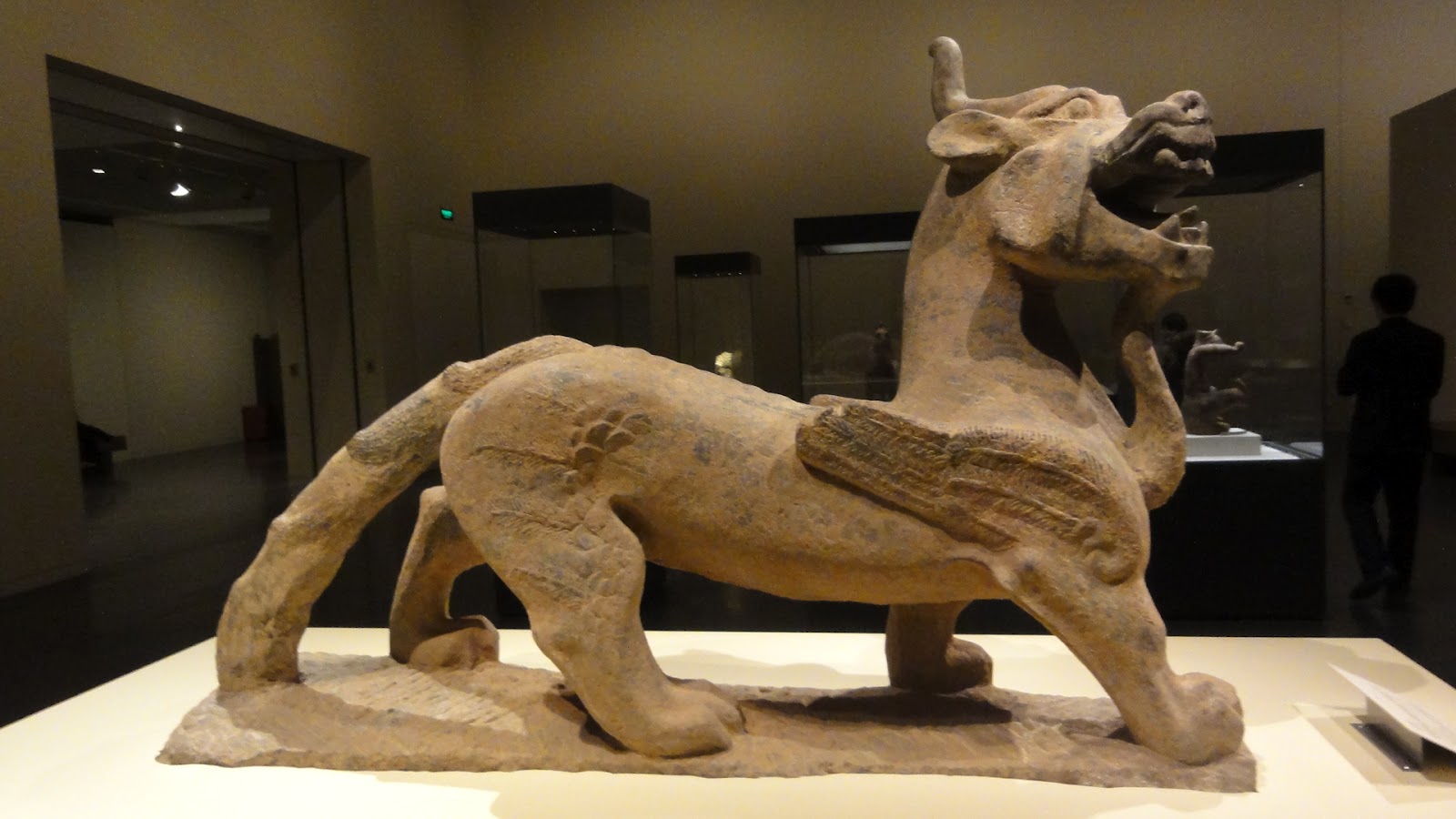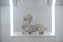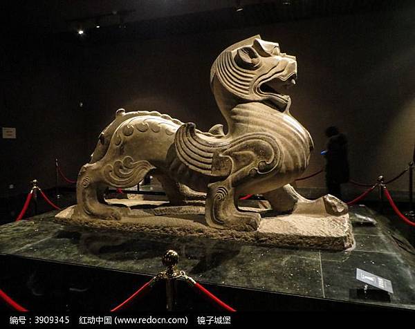石辟邪身若虎豹,嘴大牙銳,下頜一束卷鬚,身生雙翼,昂首怒目,長尾拖地,雙角直豎,羽翅振起,似有正欲飛起之感