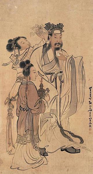 清 黃慎《韓魏公簪金帶圍圖》軸(或名《韓琦簪花圖》)。(公有領域)