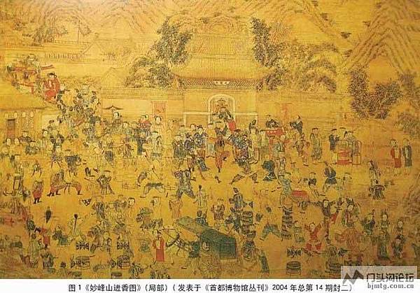 大體說來《進香圖》自上而下可分為三個部分: