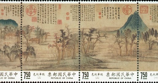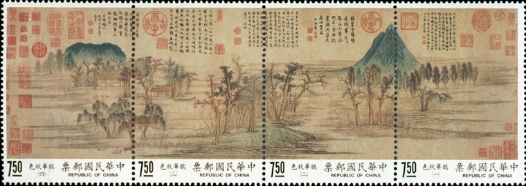 爲了讓更多的人能欣賞到這一思鄉名畫,1989年10月5日,台灣以横四連形式印發了趙孟頫的傳世之作《鵲華秋色圖》郵票,讓人們在方寸之間,一睹這幅名畫的風采。