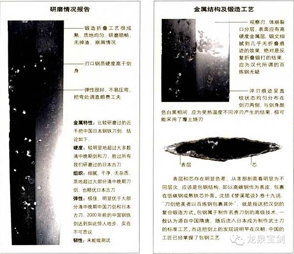 二是實物資料。對永初六年的「卅湅 」刀和建初二年的「五十湅 」劍進行科學分析表明,其金相組織都明顯分層,前者在刃部取樣含碳量約0.6——0.7%,夾雜物細微分散,變形量加大,分布均勻,大體為三十層。後者刃部組織分為三部分,中心部分約分為15層,含碳量0.7——0.8%,組織均勻,兩個邊部堆成,各有20層,含碳量不甚均勻,高碳部分為0.6——0.7%,低碳部分為0.3——0.4%,總計50層。由此可見,在「百鍊鋼」工藝中,煉數和層數之間存在這一定的關係,⑰刀劍所標的「煉」數與摺疊鍛打的次數緊密相關。