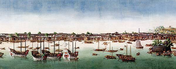 (轉載編寫自2011/10/22記者台北報導:聯合報蔡永彬、中國時報李宗祐。圖為《大英圖書館特藏中國清代外銷畫精華》中<珠江流域圖>,繪於1,760年,長920公分,細膩寫實,被譽為「廣州的清明上河圖」。)