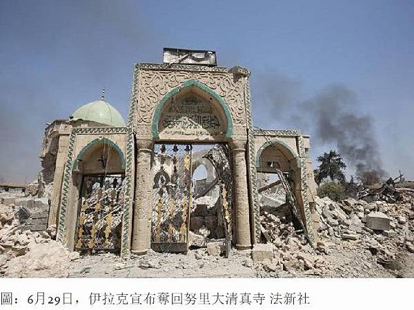 圖:6月29日,伊拉克宣布奪回努里大清真寺 法新社