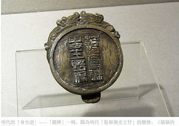 在表恩歷史意義方恩,錦衣衛象牙牌說明出明代對佩帶腰牌有嚴格規定,官員不同級別、身份需佩帶不同質地、形制的腰牌,是權力與職官的象徵。[9] 「指揮佩金牌,雙雲龍,雙虎符。千戶佩鍍金銀牌獨雲龍,獨虎符。百戶素雲銀牌符」……[10] 其職位之多,不能盡錄。至於錦衣衛,書上記載「不佩則門者卻之,私相借者論如律」、「文武官出入禁門帶牙牌,有執事、供事、朝參之別。執事,供事者皆屆期而領,如期而繳。惟朝參牙牌,得朝夕懸之」。[11] 可見,象牙牌不但顯示出明代對腰牌的重視程度,更是等級制度的反映。