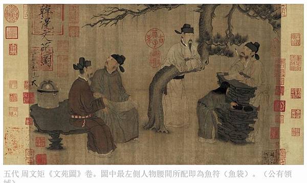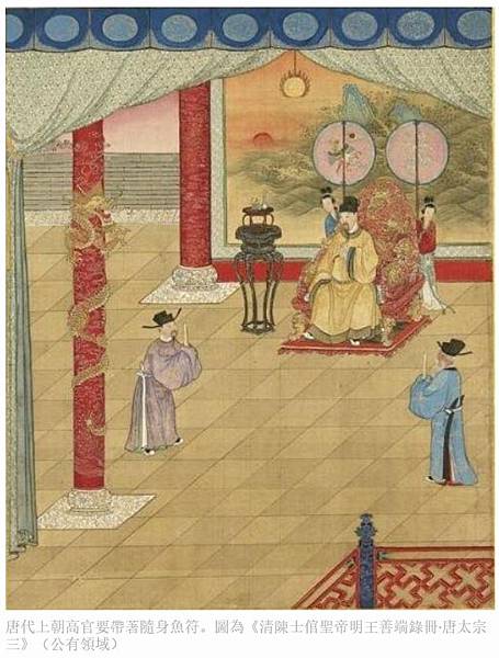 圖左為三位唐代中國官員。圖為章懷太子墓壁畫。(公有領域)