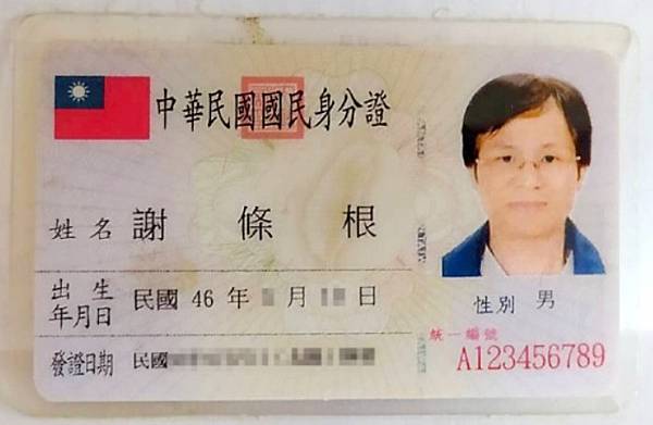謝條根的身分證字號為「A123456789」,有人稱他是「一條龍先生」真有其人,為住在新北市泰山區的63歲謝姓男子, 一條龍號碼讓他人生一波三折,險些淪為罪犯,近20年來冤跑警局、地檢署上百次,差點鬧到家庭革命,甚至還因此信用破產,讓他忍無可忍:「求求別再整我了!」 https://is.gd/95IS8F
