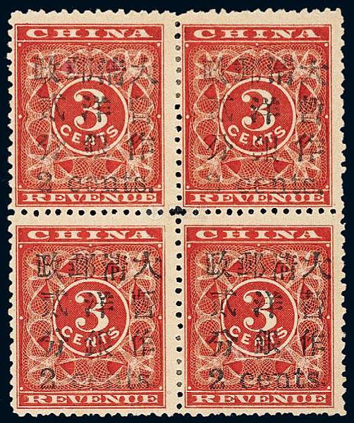 光緒二十三年正月初一(1897年2月2日),為適應開辦郵政新業務及使用高面值郵票的需要,清代國家郵政將上海海關倉庫中的紅色三分銀印花票加蓋文字改作郵票。加蓋“大清郵政”及中、英文面值。加蓋面值共5種,因加蓋字體大小不同全套可分為8種。(參見“ 紅印花 ”條)