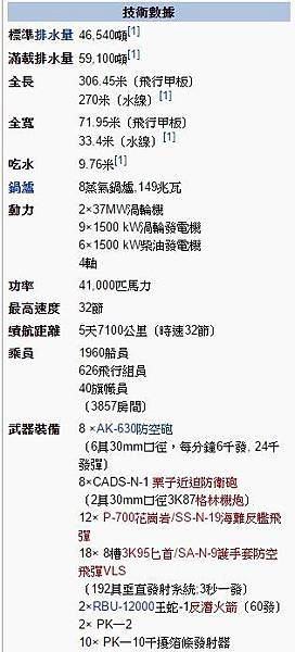2 庫茲涅佐夫海軍上將號航空母艦 -基本資料