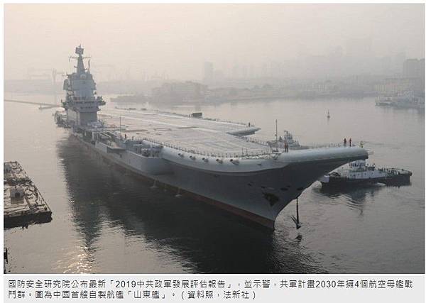 〔中央社〕國防安全研究院公布最新「2019中共政軍發展評估報告」,並示警,共軍計畫2030年擁4個航空母艦戰鬥群,而中國在南中國海填海造島並軍事化,目的是攻打台灣時可從南部進攻,不必擔心美軍從背後實施反擊,因此攻打台灣風險正在提高。