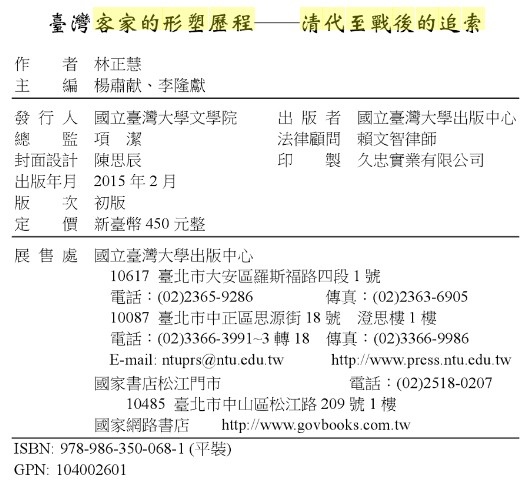 on line reading 臺灣客家的形塑歷程: 清代至戰後的追索 - 林正慧 - Google 圖書 - https://goo.gl/Lf9lBl