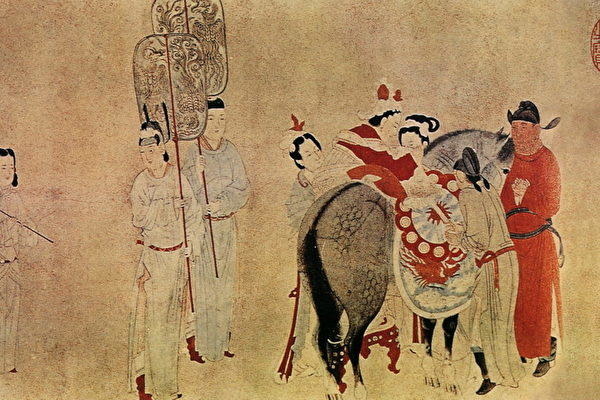 元 錢選〈楊貴妃上馬圖〉。(公有領域)