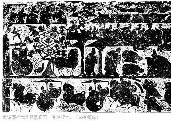 東漢嘉祥武梁祠畫像石上有連理木。(公有領域)