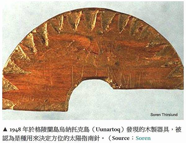 ▲ 1948 年於格陵蘭島烏納托克島(Uunartoq)發現的木製器具,被認為是種用來決定方位的太陽指南針。(Source:Soren Thirslund)