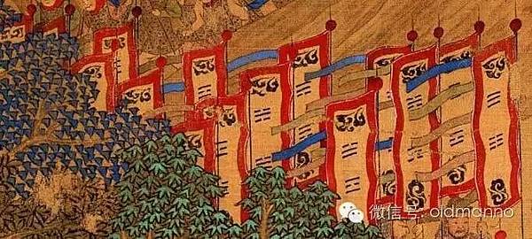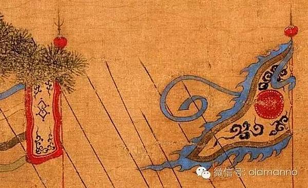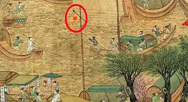 但是前面也說了這是非官方的,所以太陽旗並沒有嚴格的標準。我們會發現有些太陽旗畫的並不一樣,可以說五花八門。只是中心沒有脫離,那就是無論如何旗幟上是個太陽的。比如明朝仇英版本的《清明上河圖》中就有一些“國旗”,畫的就簡單多了,只一個紅太陽而已,周圍的“金光”就沒有了。