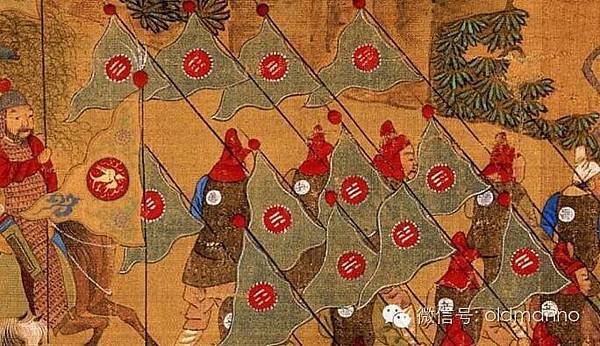 歷朝歷代都有朝代旗,當時講究朝代五行之德輪轉,每個朝代有各自的標誌顏色,比如宋朝尚木德、服飾以綠色為主,元朝尚金德(金克木)、服飾以白色為主,明朝尚火德(火克金)、服飾以紅色為主,清朝尚水德(水克火)、服飾以黑色藏青色為主等等。