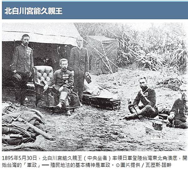 左圖:北白川宮能久親王於澳底上岸後拍攝之照片