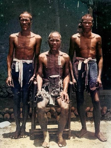 鳥居龍藏與他鏡頭下三個地方的阿美族男人。