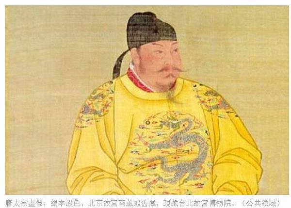 唐太宗畫像,絹本設色,北京故宮南薰殿舊藏,現藏台北故宮博物院。(公共領域)