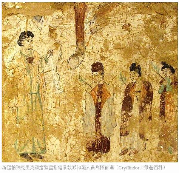 新疆柏孜克里克洞窟壁畫描繪景教派神職人員列隊前進(Gryffindor/維基百科)