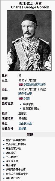 查理‧喬治,戈登(Charles George Gordon)(1833年1月28日—1885年1月26日)