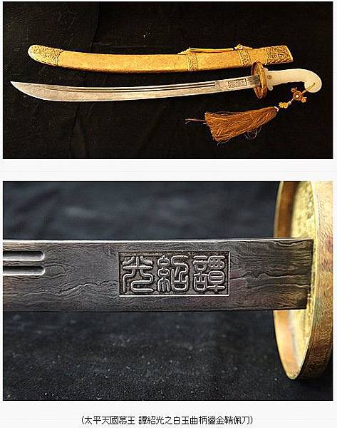 (太平天國慕王 譚紹光之白玉曲柄鎏金鞘佩刀)