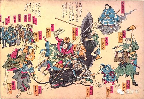 為了應付地震,日本人首先考慮怎樣把鯰魚鎮住,由此衍生出的浮世繪甚至獨立成一種「鯰繪」,鯰魚,體長形、頭部平扁、尾部側扁、口下位、口裂小,主要生活在江河、湖泊、水庫、坑塘的中下層,秋後居於深水,在污泥中越冬。