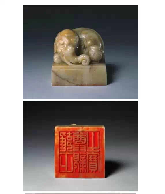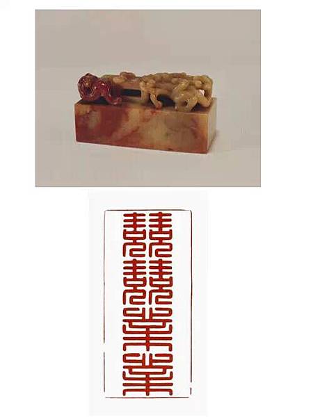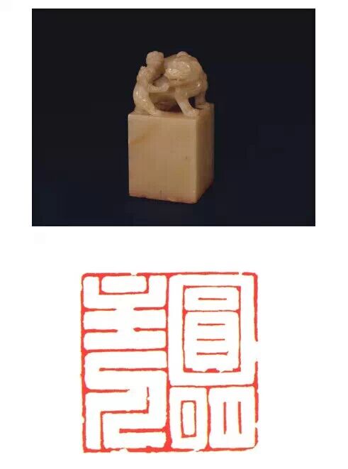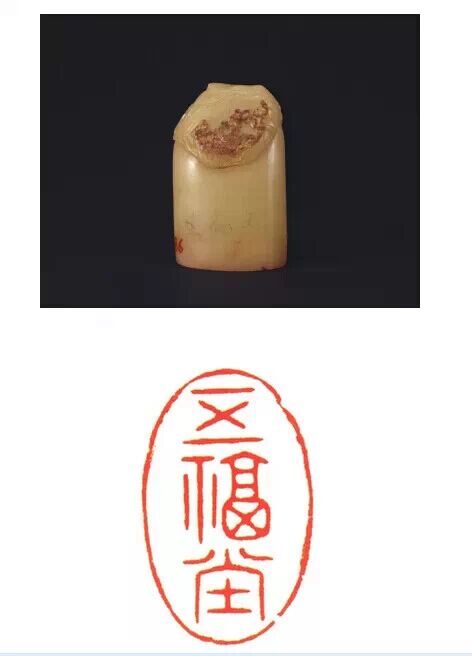 清咸豐,壽山石質,隨形長方形璽,漢文篆書。面寬 232.50000000000003px ,長 225px ,通高 325px 。