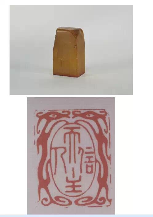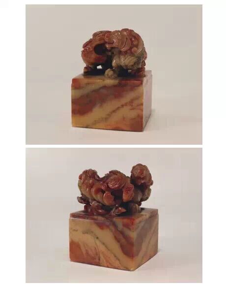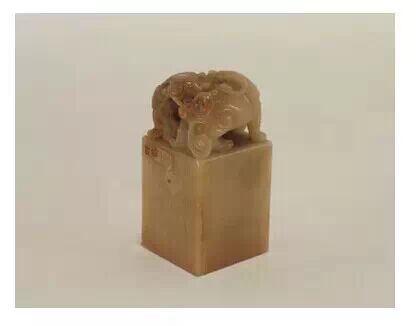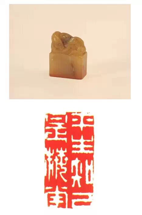 清咸豐,田黃石質,瑞獸紐長方形璽,漢文篆書。面寬 70px ,長 100px ,通高 120px ,紐高 70px 。