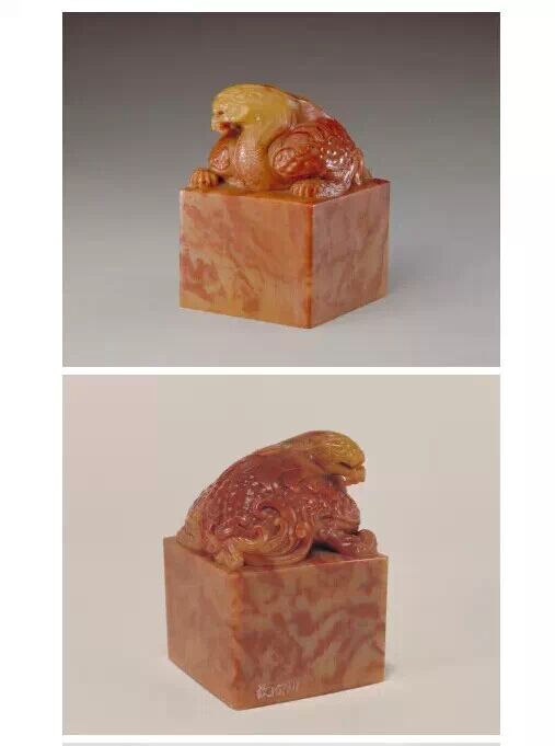 清雍正,壽山石質,鼉龍紐方形璽,篆書。面 165px 見方,通高 237.5px ,紐高 112.5px 。