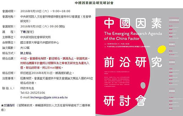 (本文改寫自中研院社會所與清大當代中國研究中心主辦之「中國因素前沿研究研討會」論文,二○一六年九月十日)